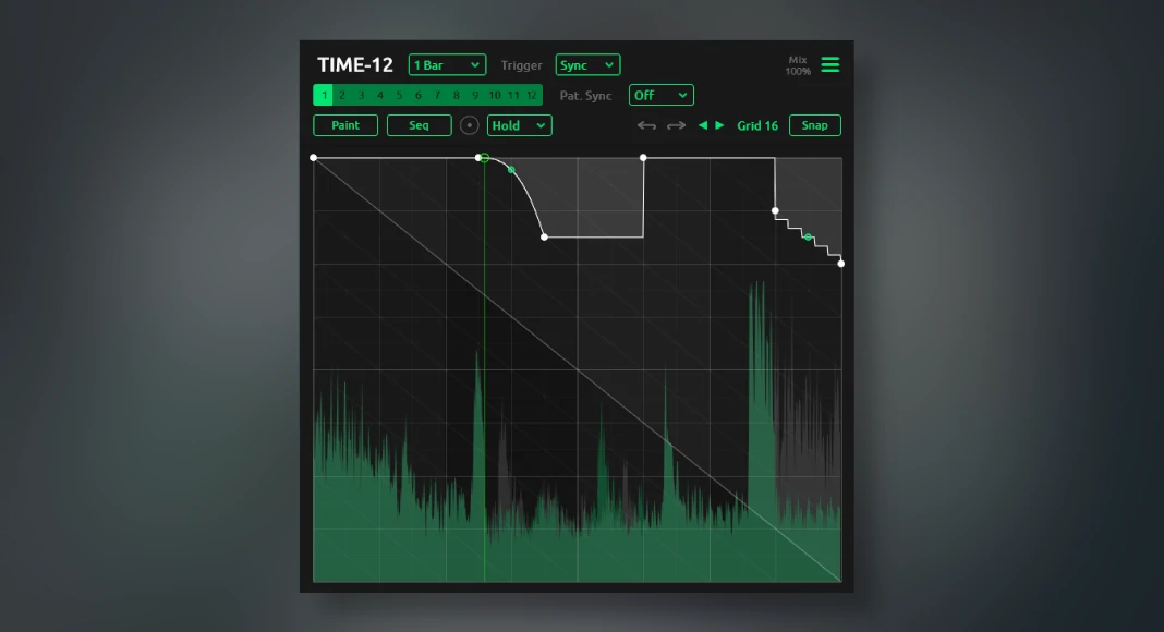 The interactive pain feature within Time-12, which simply allows the music producer to simply paint the shape of the time-warp transient shape. Check it out below: