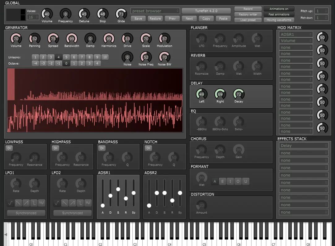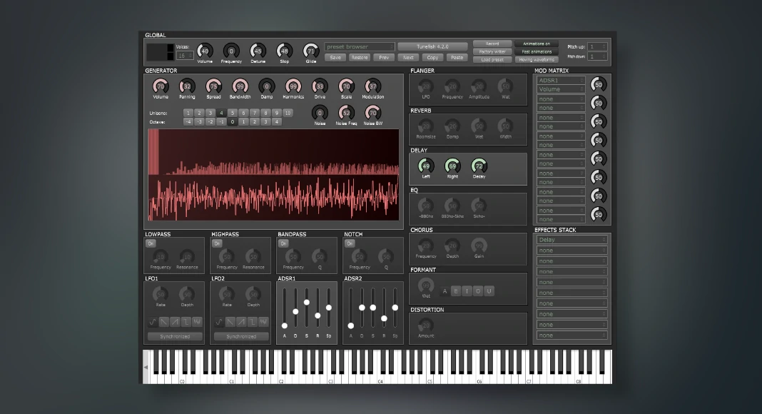 When it comes to a wide range of synth-style modulations and well-thought-out sound signal processes, Tunefish has definitely achieved greatness within this field!