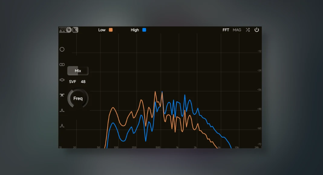 - Low & high mix settings, SVF or FIR settings with 12/24 or 48, and a frequency range ranging from 500 Hz to 18,000 Hz.
